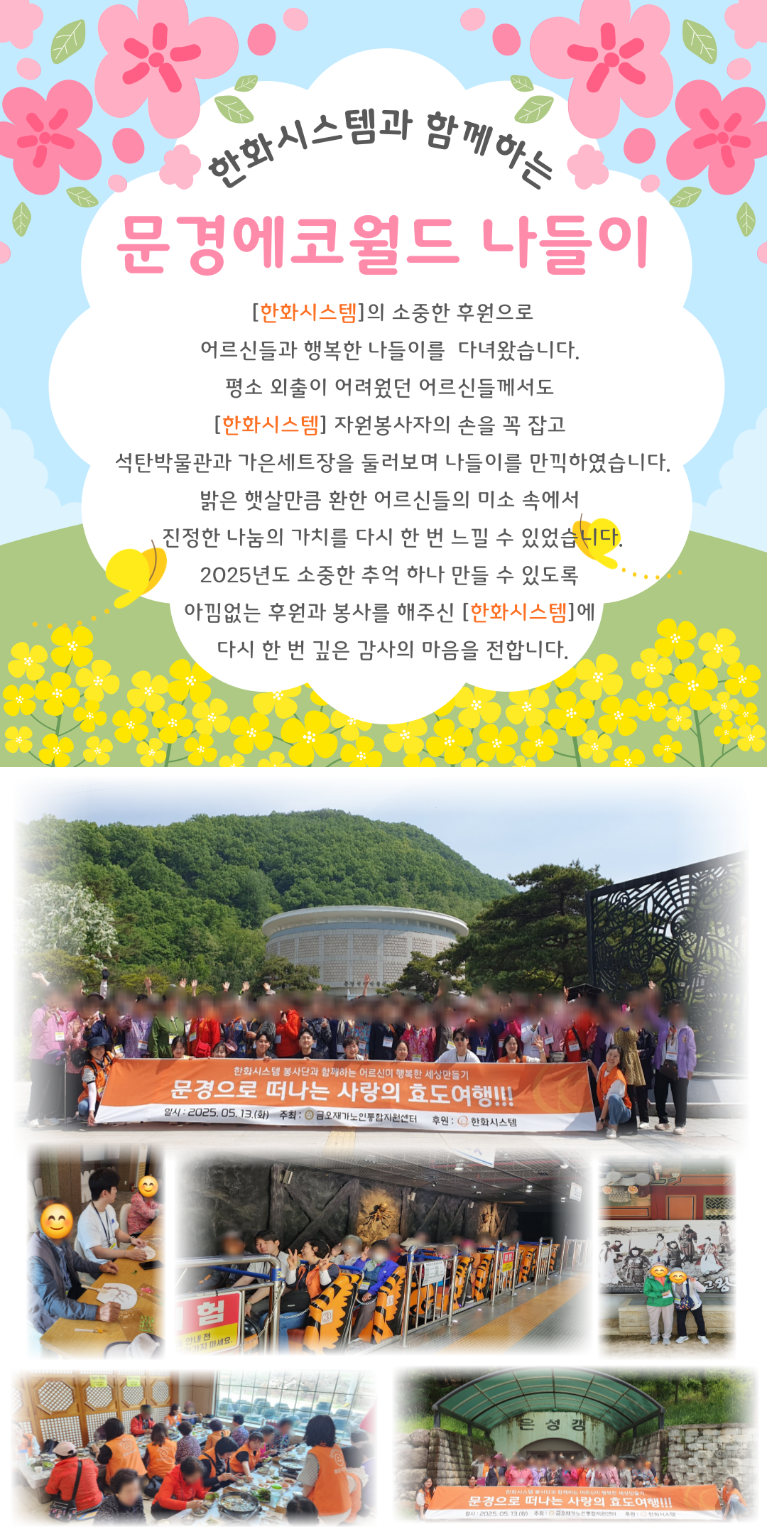 노인맞춤돌봄 한화시스템과 함께하는 문경에코월드 나들이 페이지 정보 작성자 관리자 댓글 0건 조회 653회 작성일 25-05-14 11:55 목록 게시판 리스트 옵션 검색 본문 이전글구미시청년새마을연대 "행복나눔 사랑의 물품전달" 25.06.17 다음글구미시청년새마을연대와 함께하는 주거환경개선사업 25.04.29 댓글 0 댓글목록 등록된 댓글이 없습니다.